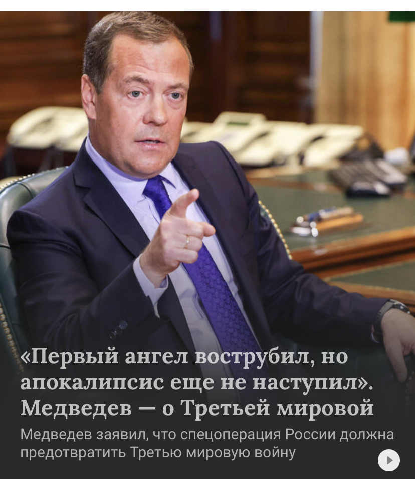 Видимо, у Медведева уже тяжёлая форма белой горячки, раз уже трубящих ангелов начал слышать)))