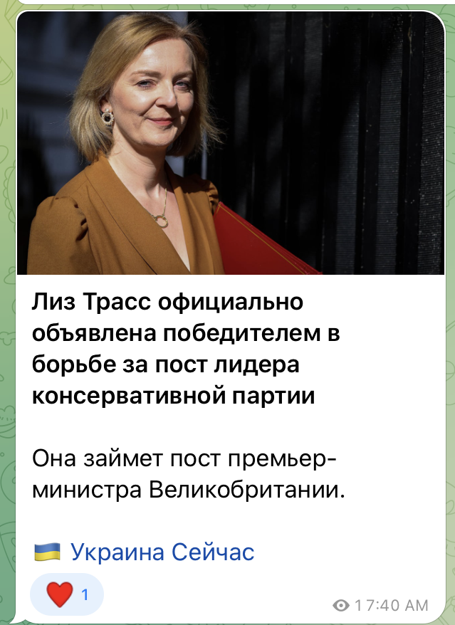 Лиз Трасс стала новым Премьером Великобритании. Пожелаем ей успехов на новой должности)))