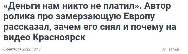 "...Он также признался, что авторы просто не узнали мост в Красноярске, который взяли в видео о замерзающей Европе. По иронии судьбы, этот российский город до сих пор не газифицирован."