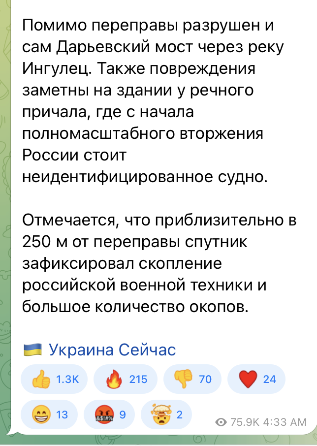 Ладно,поняли,взорвали все мосты.Возникает вопрос,как они будут освобождать территории,которые в основном находятся по ту сторону Днепра?