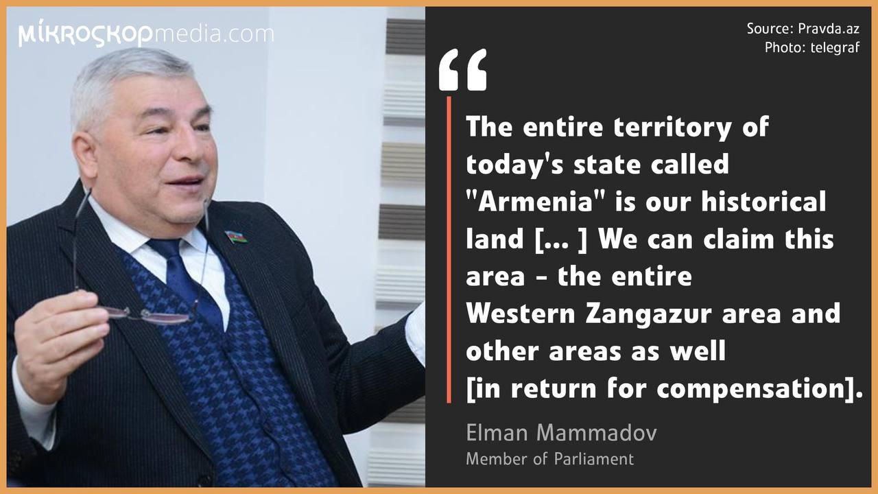 нет денег, чтобы выплатить компенсацию Азербайджану за «военные преступления» последних 30 лет, поэтому вместо этого они должны отдать часть своей территории. Об этом заявил депутат парламента Азербайджана Эльман Мамадов.
