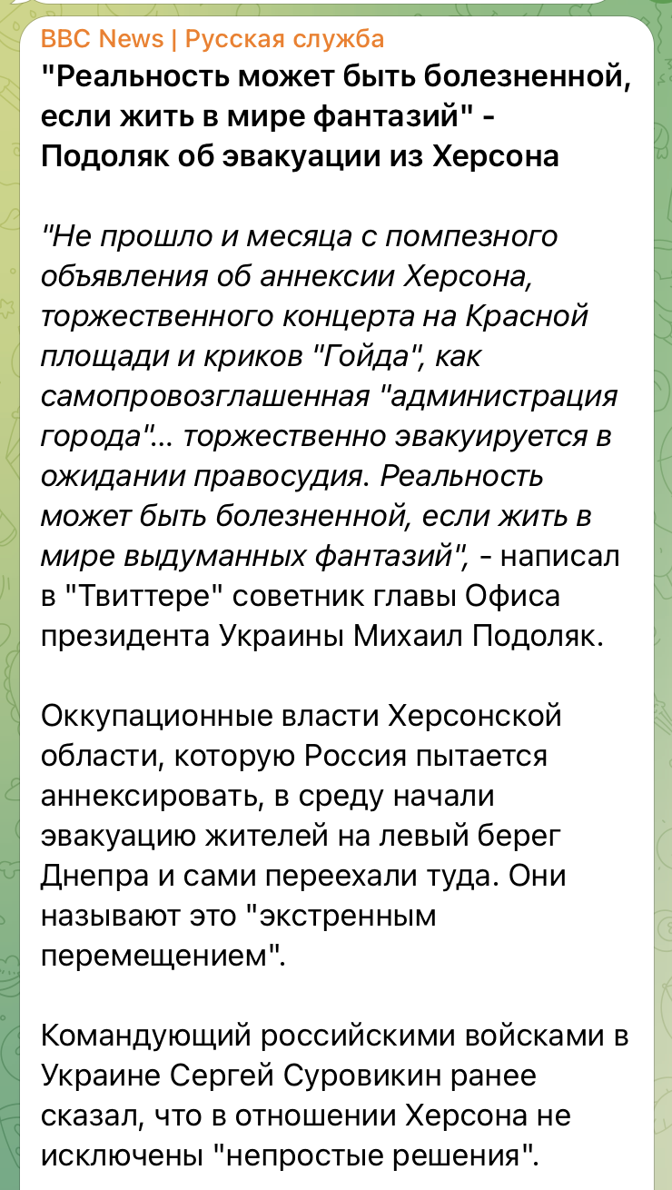 А так преподносится эвакуация гражданских лиц их Херсона: