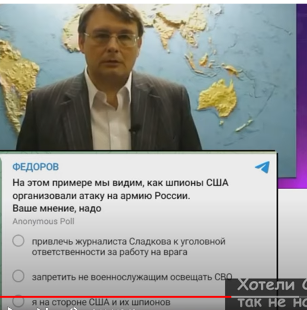Ух ты, я что то пропустил, а чего это он на Сладкова наезжает? Вроде тот все время на передовой, освещает "такую трудную но нужную для России работу"?
