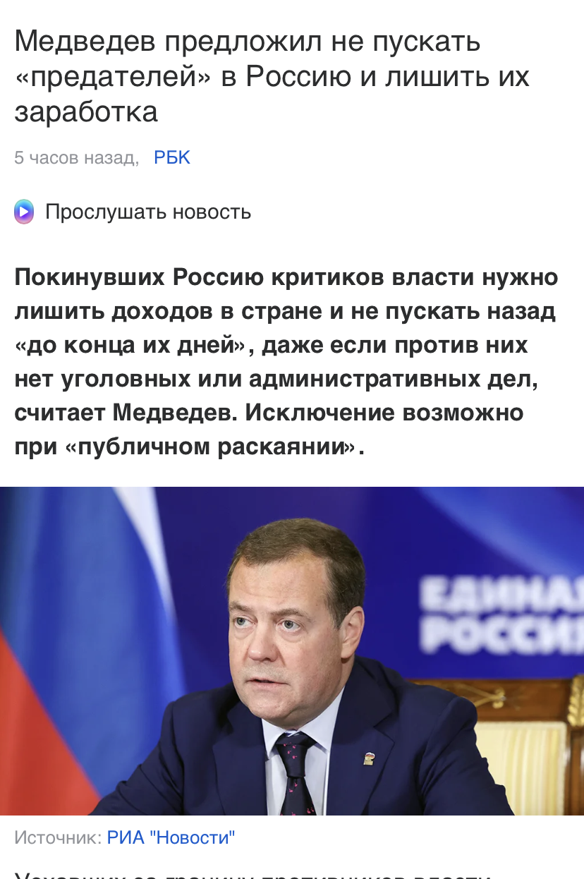 Вот были бы у мозги у российских политиков, они бы не ДНР и непонятно какую часть Запорожья и Херсона к себе присоединили, а создали бы (как план Б  в случае неудачи Киев за три дня) на этой базе некую Украинскую республику, посадив  в Донецк Януковоща, и "я тут ни причем", тут гражданская война. Типа корейской войны на практике, и Тайвань -Китай в пполитике. Совсем другой бы был расклад, как в плане санкций , так и в пропаганде (а ведь такой опыт был после первого майдана, когда рЫгионалы собрались в Северодонецке и провозглашали "Восточную" Украину).