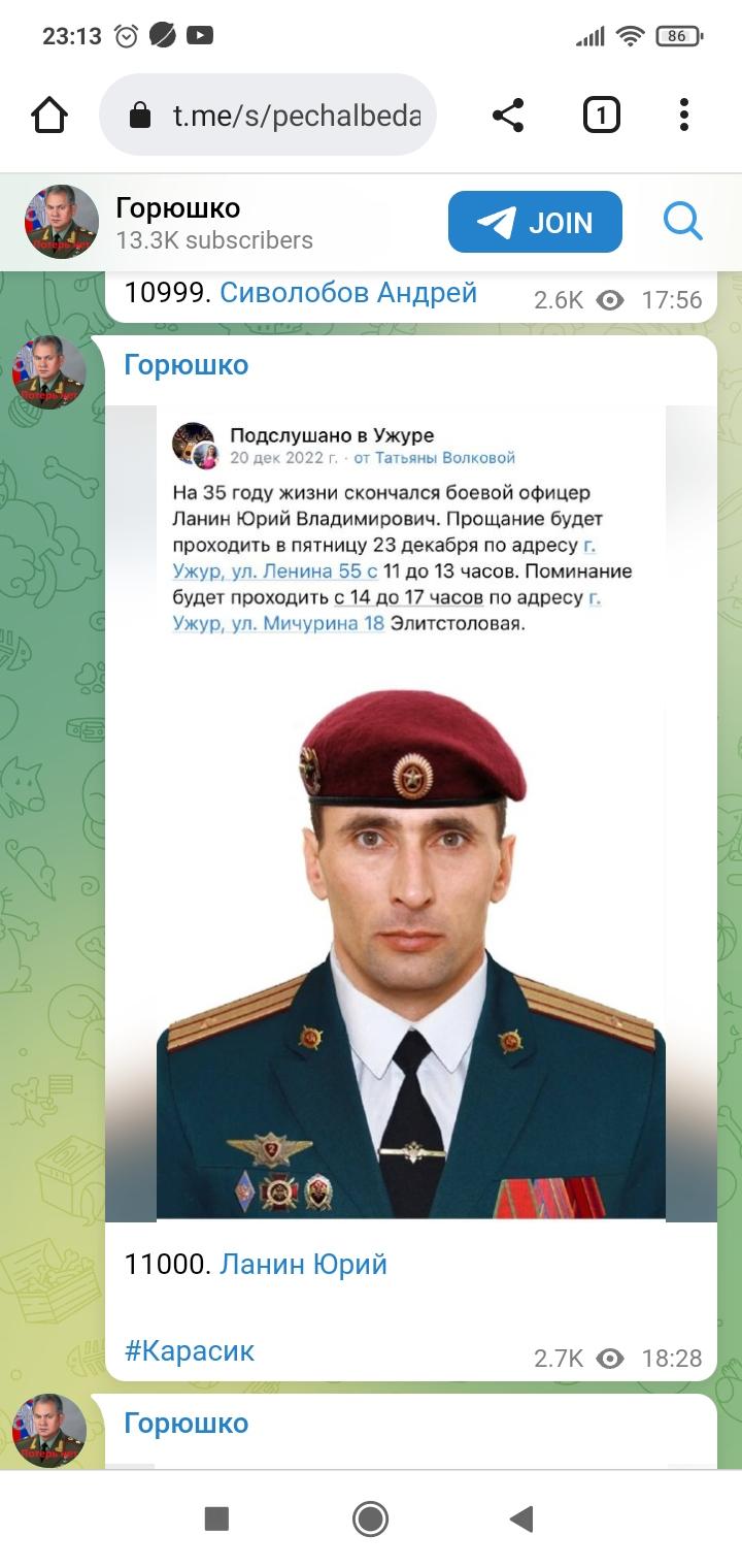 В конце декабря было 10000 оф. трупов, спустя 2 недели уже 11019. В основном Бахмут, Соледар, Макеевка. О полноте учета можно судить по новогоднему прилету в Макеевке: Гиркин писал о сотнях погибших, МО РФ сообщило о 89, пока еще разбирали завалы, а фамилий известно 35. Сегодня юбилейный: