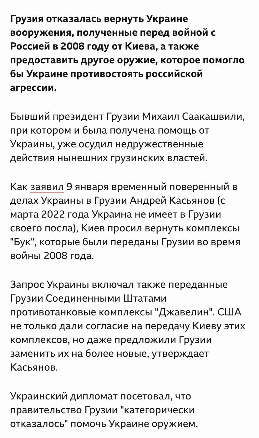 «У нас нет танка, чтобы передать Украине, но есть электрогенераторы и определенный ресурс гуманитарной помощи. У нас есть ресурс, чтобы помочь проживающему в Грузии украинскому народу… Если после этого Подоляк не увидел позиции Грузии, то мы можем оценить его заявление как наглость», – отметил он.
