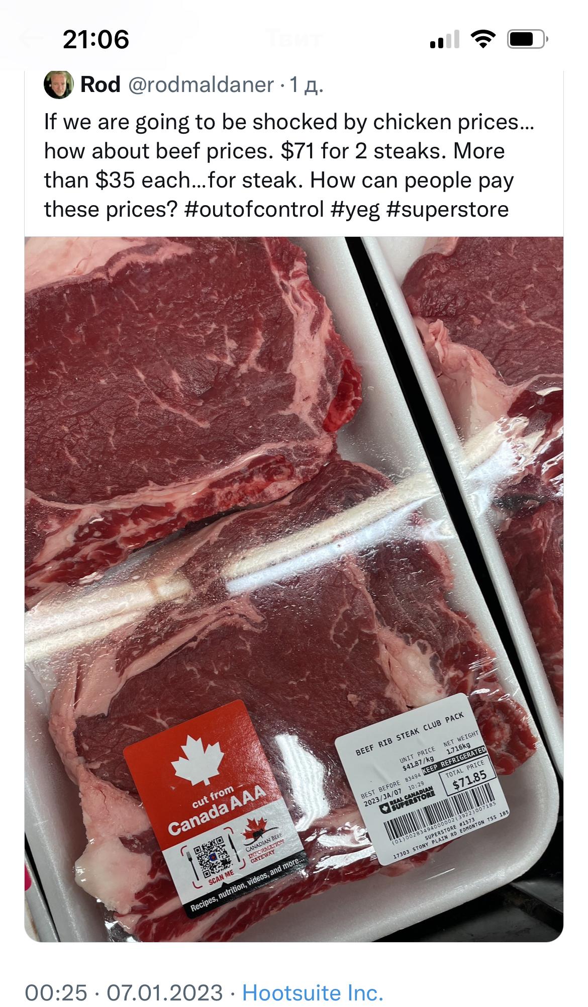 P.S. А сколько стоит такой же кусок говядины за 1 кг у вас - если перевести в канадские доллары?