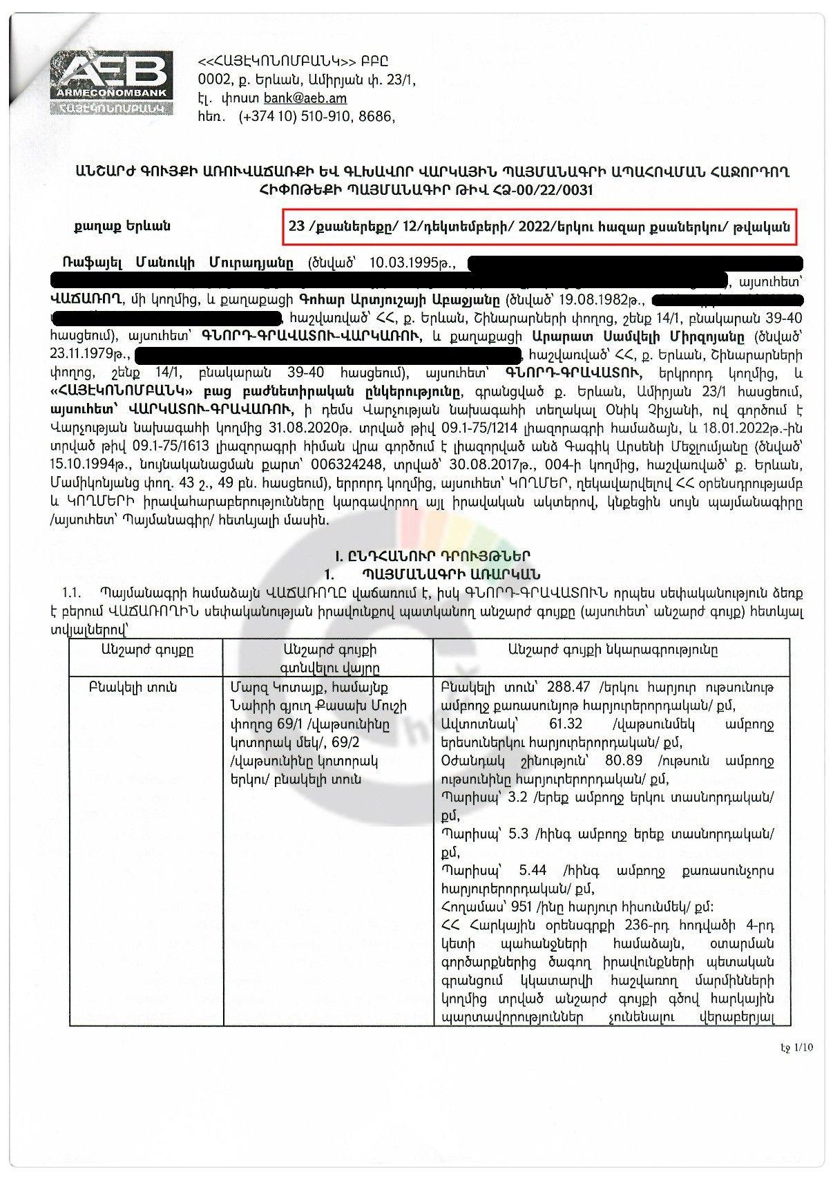 23 декабря Арарат Мирзоян подписал договор ипотеки.