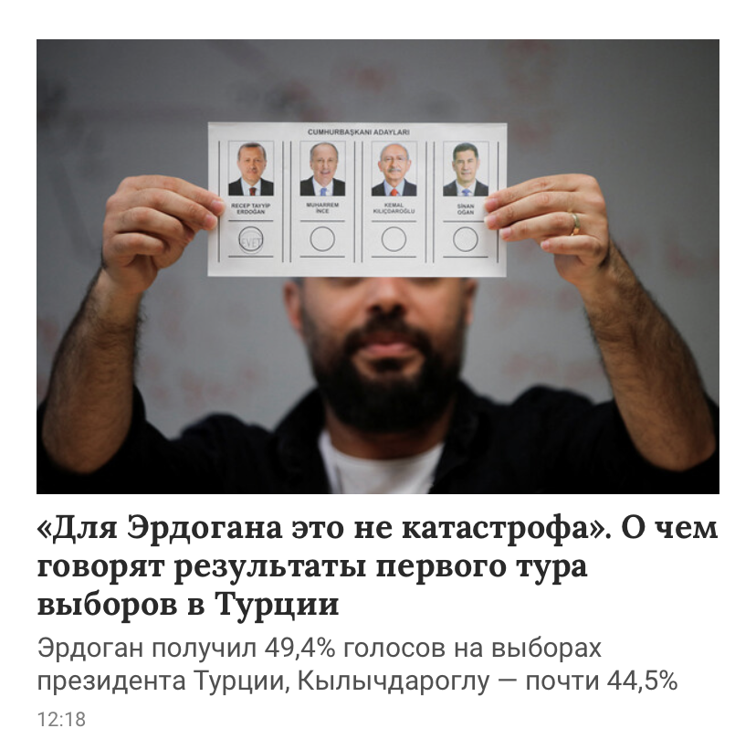 Россия (Путин) волнуются за Эрди больше чем сам Эрди - это явно чувствуется, когда читаешь росСМИ ))) интересно, если (не дай Бог, конечно) Эрдоган «переизберётся», в Гос. Думе опять будут стоя аплодировать по этому поводу - как аплодировали Трампу?)))