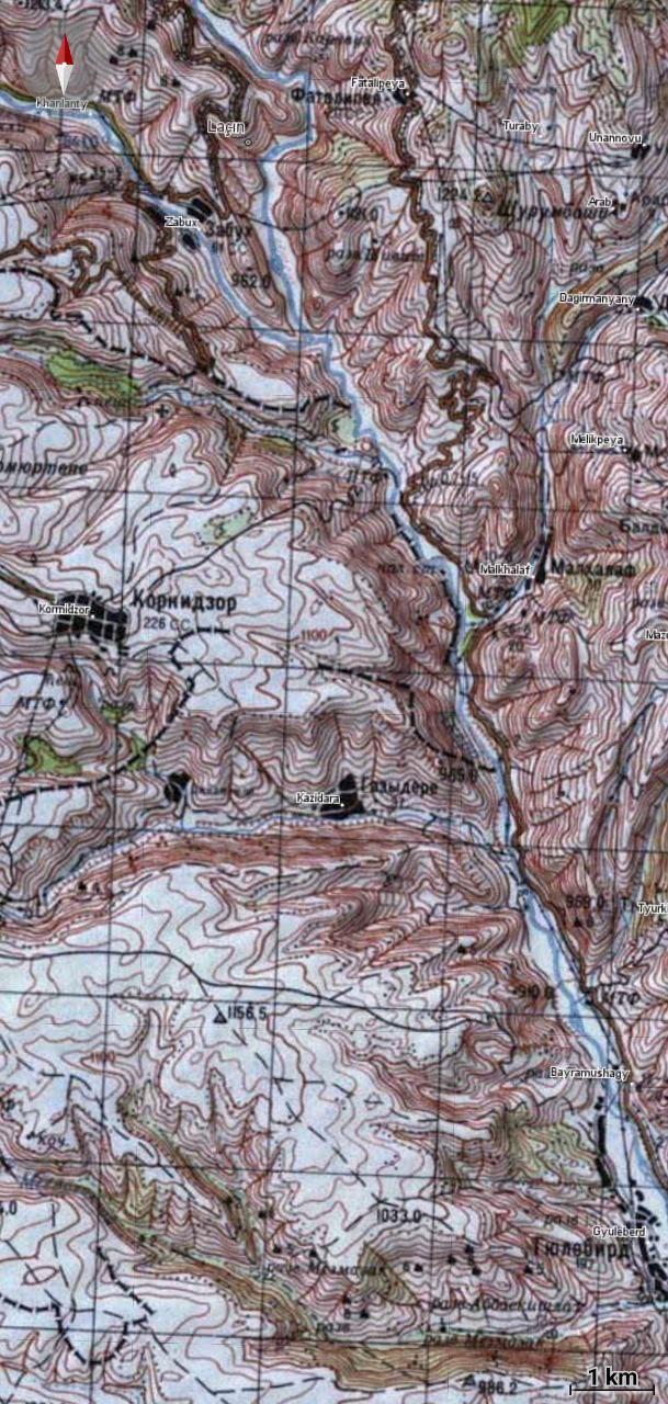 Вот карта советского генштаба. Граница между Армянской и Азербайджанской ССР проходила по реке.