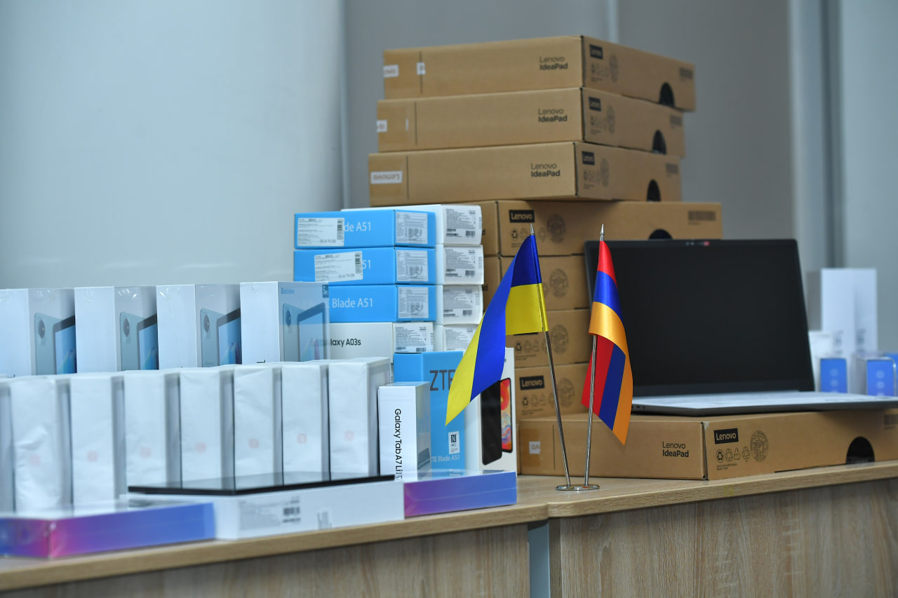 От Армении на нужды украинского образования выделили 1050 гаджетов: смартфоны, ноутбуки, планшеты. Ноутбуки и планшеты будут переданы в собственность учебных заведений, смартфоны как персональные подарки учащимся учреждений профессионально-технического образования из малообеспеченных семей.