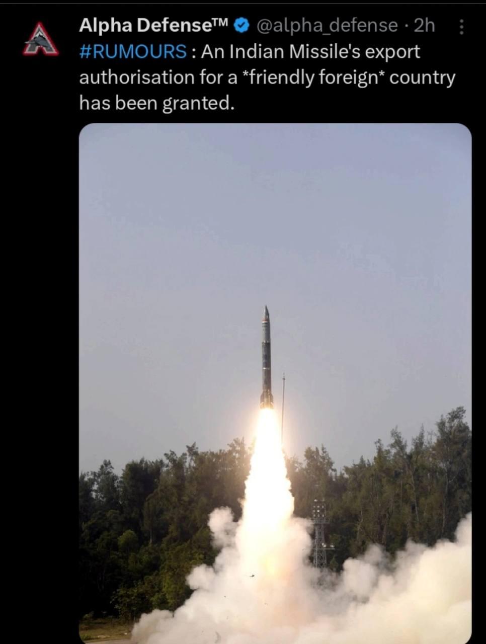 Как сообщает индийский оборонный канал «Alpha Defense», получено разрешение на экспорт квазибаллистических ракет «Pralay» в «дружественную страну».