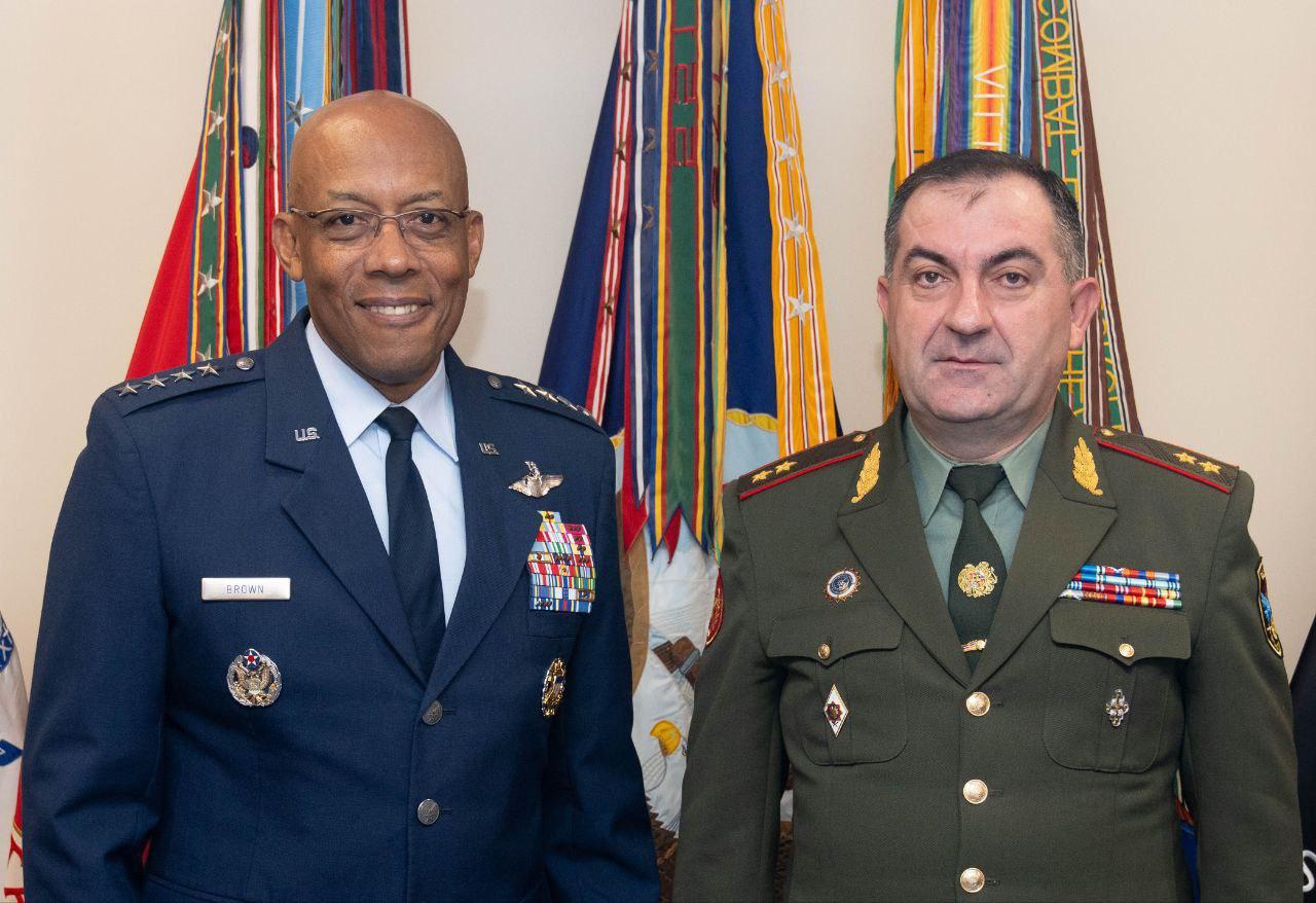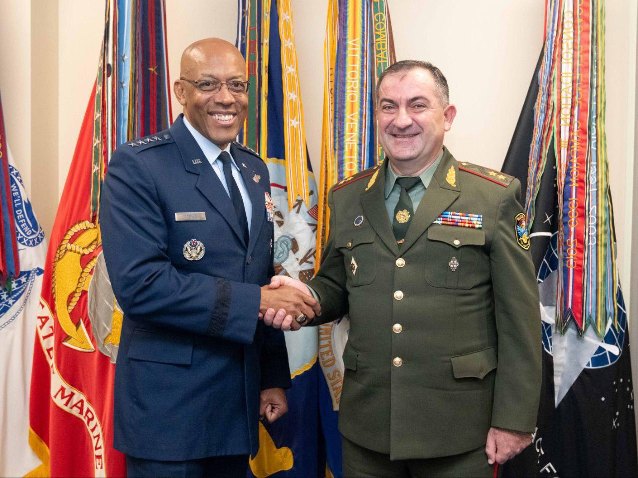В рамках рабочего визита в США 16 октября первый заместитель министра обороны РА, начальник Генерального штаба ВС, генерал-лейтенант Эдвард Асрян встретился с председателем Объединенного комитета начальников Вооруженных сил США генералом Чарльзом Брауном.