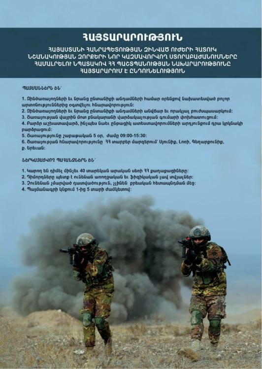 ️Министерство обороны Республики Армения объявляет набор в новосозданные силы специальных операций.