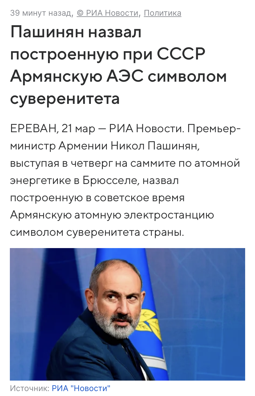 🇪🇺🇦🇲Премьер-министр Никол Пашинян встретился с председателем Европейского совета Шарлем Мишелем в рамках первого Саммита по ядерной энергии в Брюсселе.