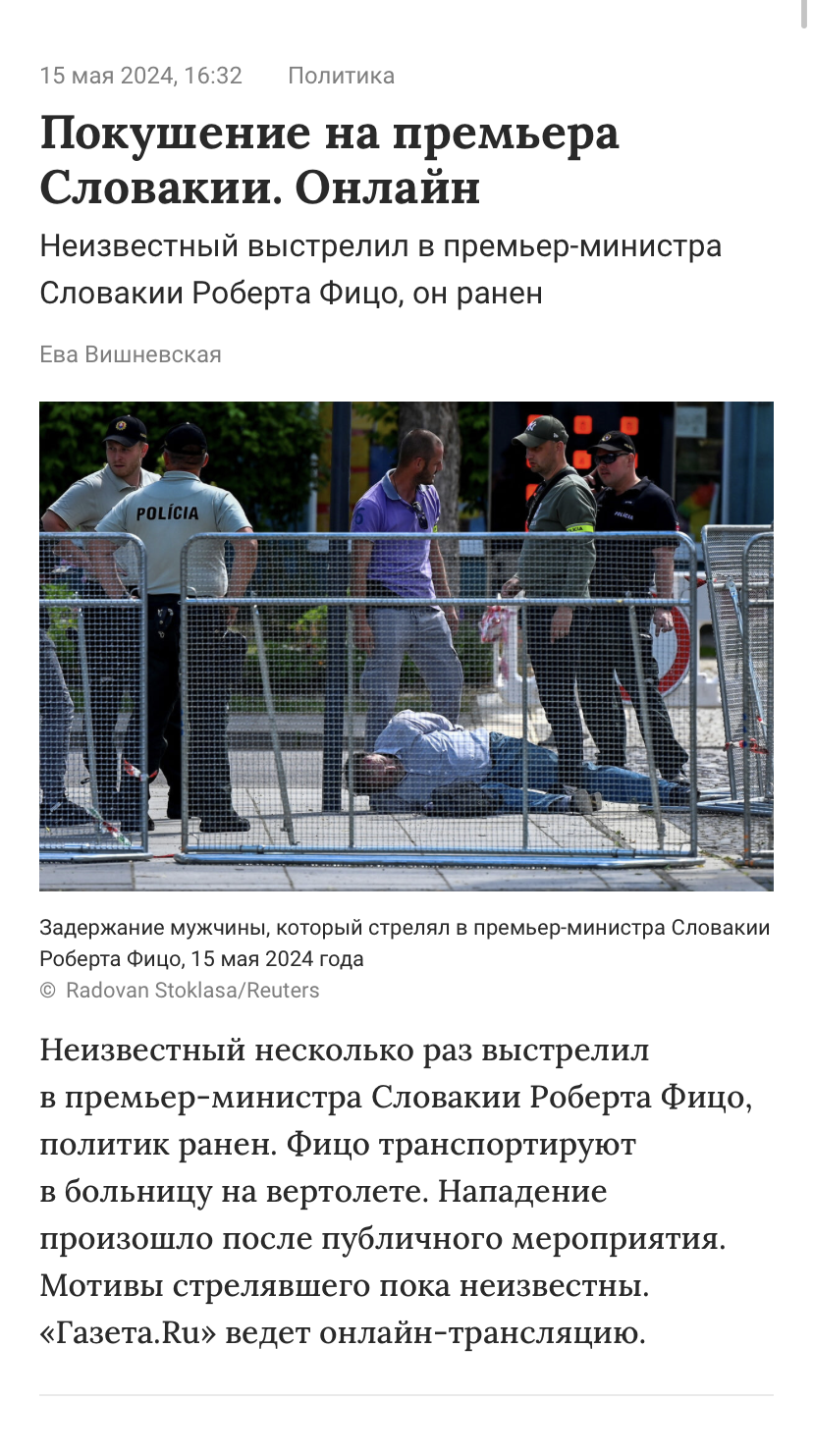 @Rubik , тут интересная новость- пишут, что на премьера Словакии было совершено покушение.