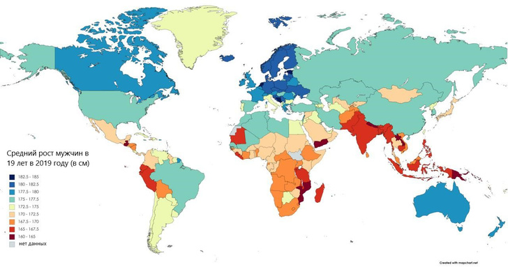 В среднем жеж имеется в виду. Голландцы в среднем 182 см. И тенденция чем севернее народ, тем выше.
