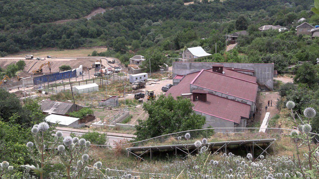 Идёт строительство стены, отделяющей недавно построенную школу в Киранце от азербайджанских пограничников