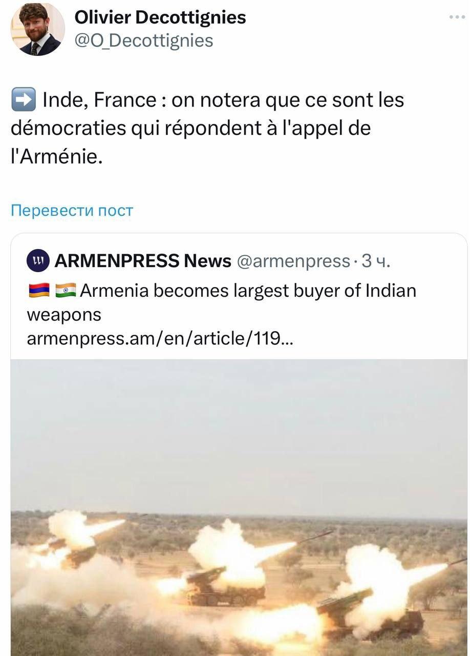 «Индия, Франция — следует отметить, что на призыв Армении помочь в укреплении ее обороноспособности откликаются именно демократии».