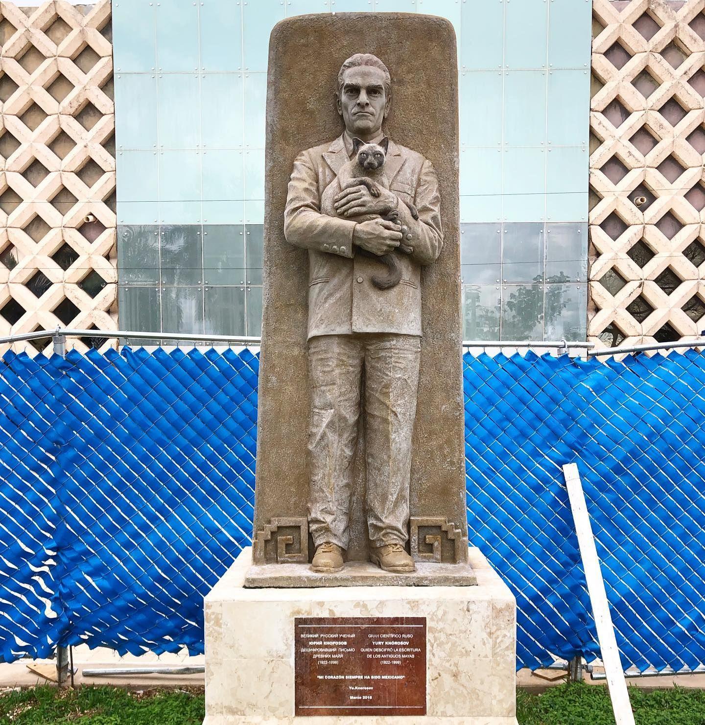 В Мексике есть памятник советскому ученому Юрию Кнорозову. Это скульптура, изображающая строгого человека, держащего на руках кошку. (...)