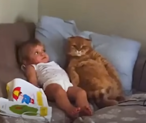 Кошки вошли в новую эпоху размножения, ставя его уже осознанной целью непосредственное снабжение людей котятами. Мой дилетантский перевод заголовка: "Уличная кошка-мать прогоняет от себя своего котёнка, давая ему дом". Во всяком случае, он соответствует содержанию.