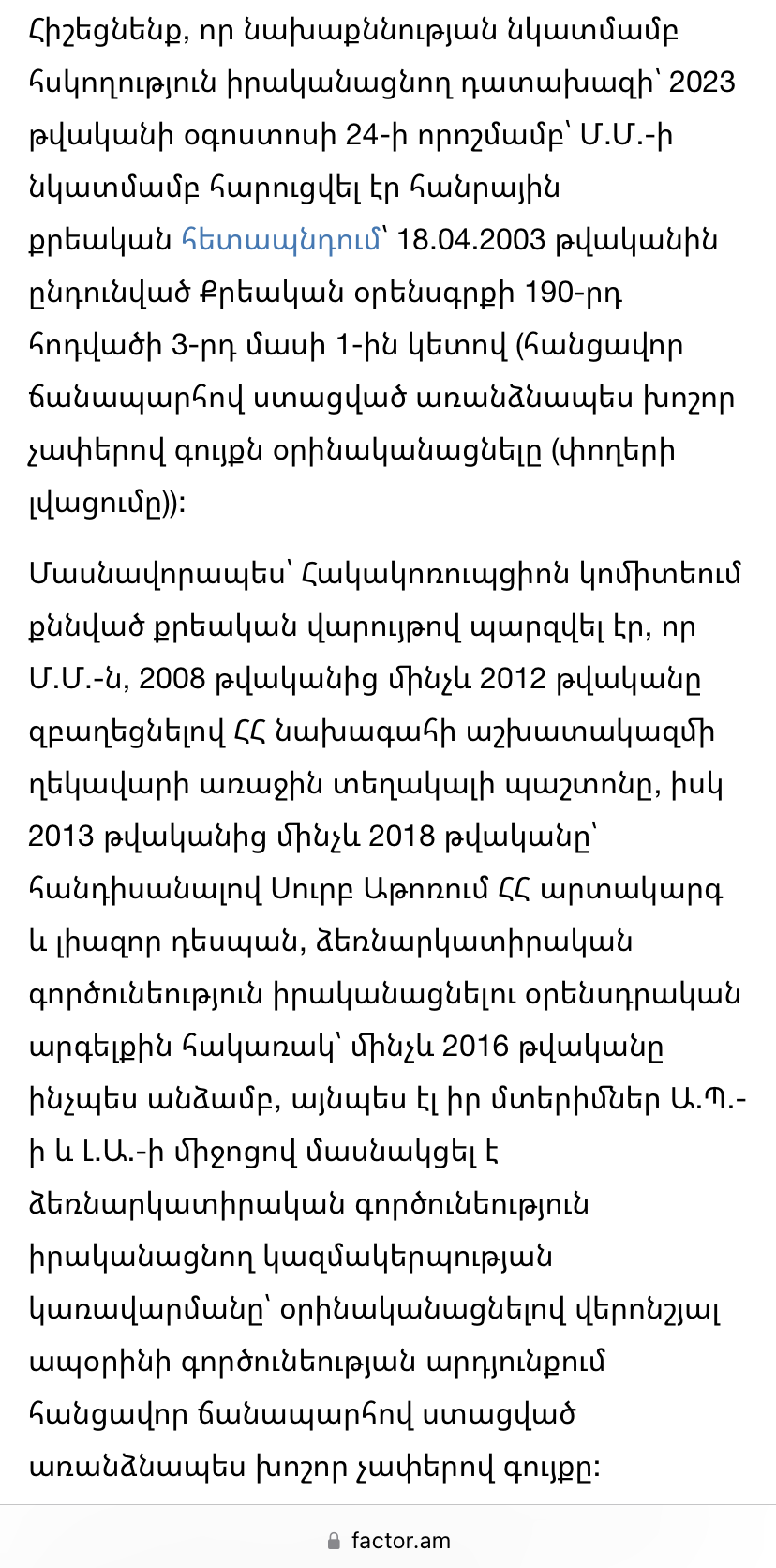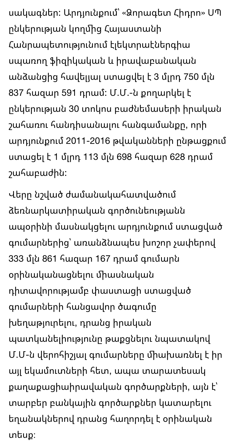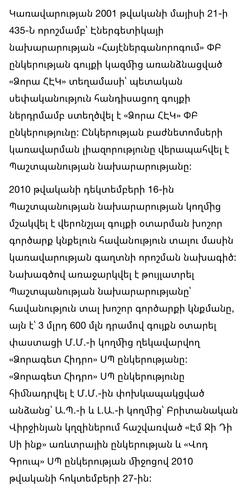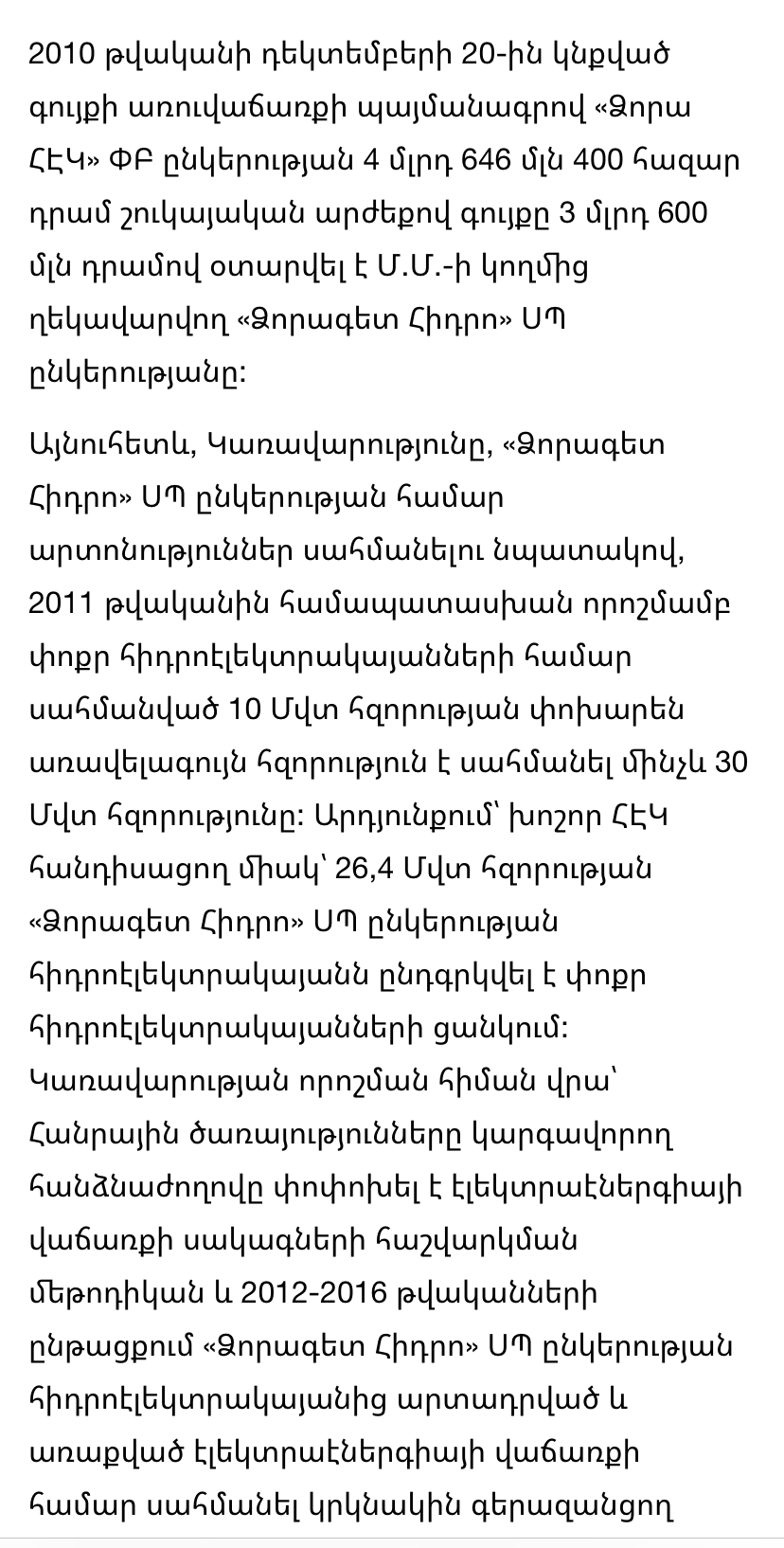 Ты представляешь, сколько там задействованных лиц и, ведь, все делали через правительство - типа, на законных основаниях, хотя, сами эти "секретные решения правительства" и были незаконными.  И, это, только, по  Мишику, только по энергетике, а что творилось во всех сферах, в целом, по стране (еще и в  Арцахе).
