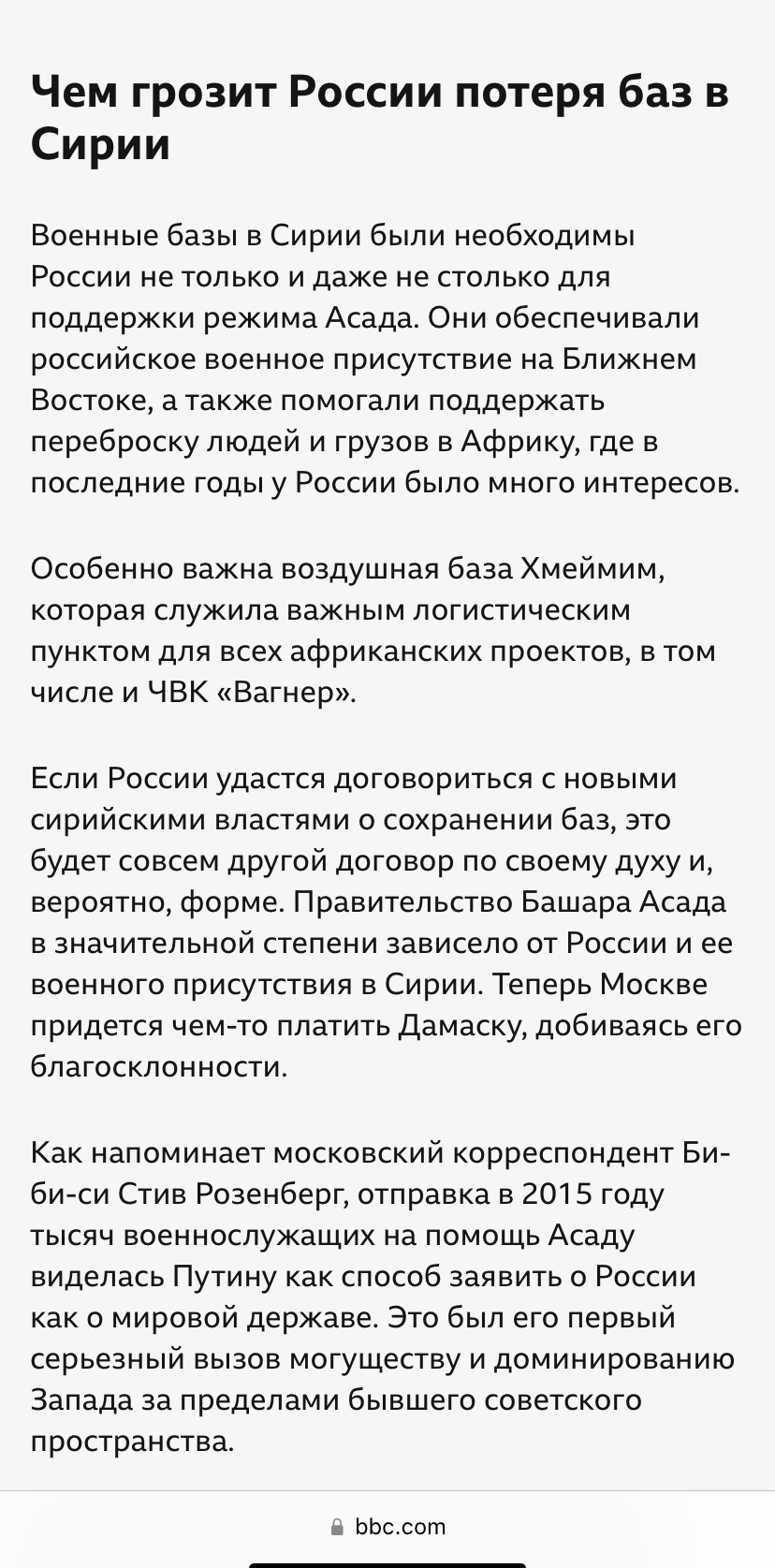 Бибиси в четвертом абзаце без намёков прямо пишет,что  русские ради сохранения баз должны таскать каштаны для протурецких сил сидящих в Дамаске.