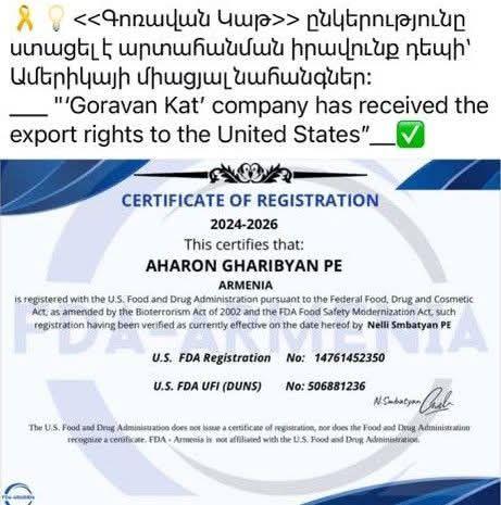 А это разве первый армянский производитель, получивший добро от Амергоскомнадзора на экспорт в США?