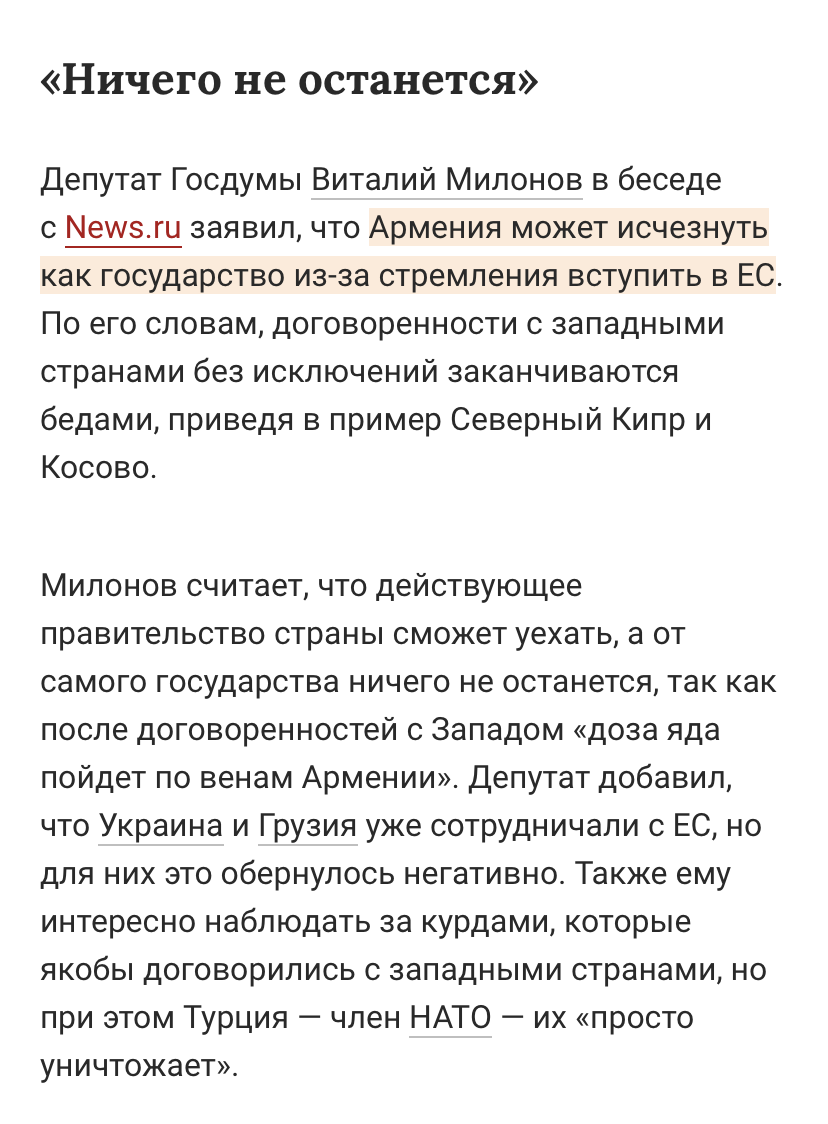 Депутат Виталий Милонов не допускает возможности, что чекисты выполнят договорные обязательства по защите Армении?