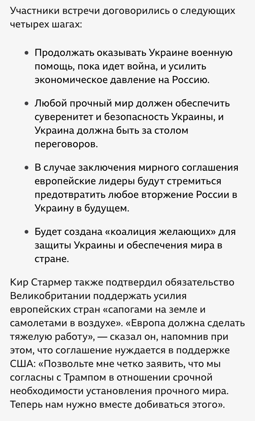 А Стармер с Макроном по любому уповают на Трампа..........по всем вопросам, планам,в том числе и мирным инициативам ...... и надеждам.........так что придётся и гастум надевать........если придется и хламиду с рубищем...