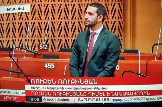 Титры на экране: Рубен Рубинян, глава представительства Азербайджана в ПАСЕ.🤣